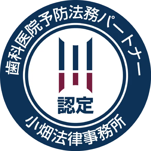 当院は、弁護士法人 小畑法律事務所より『歯科医院予防法務パートナー』の認定を受けております。小畑弁護士は弁護士と歯科医師のWライセンスを所有し、歯科治療と法律の橋渡しに最適な方です。今回の認定は患者様が安心して治療を受けられ、スタッフが安心して働くことができる環境を整えていることを示すものです。